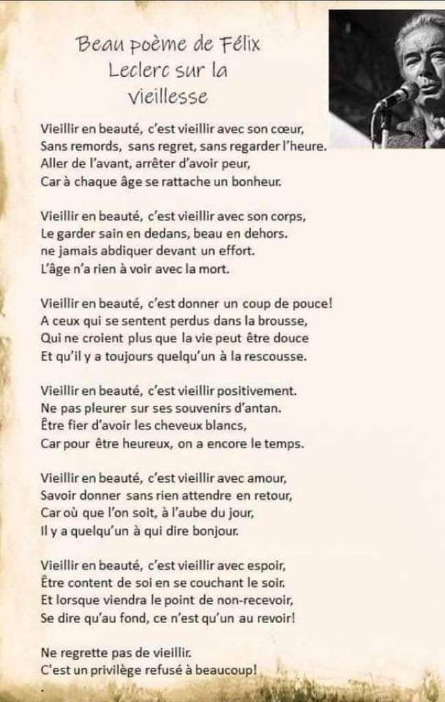 Beau poème de Félix Leclerc aur la vieillesse